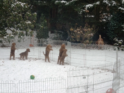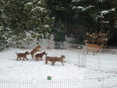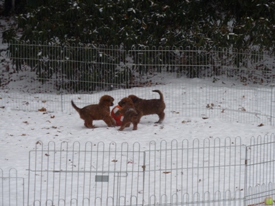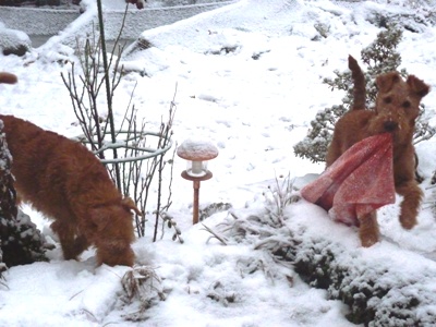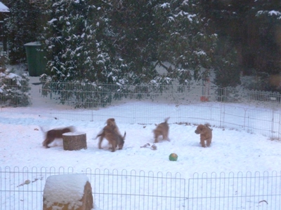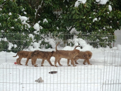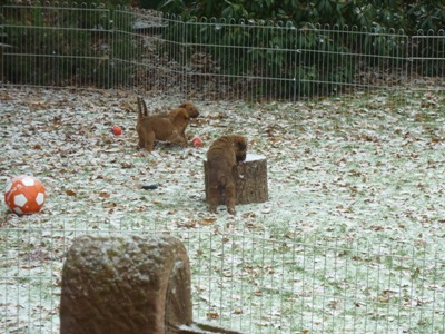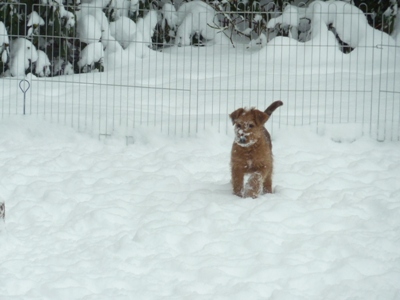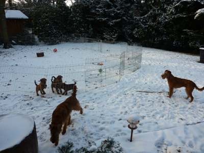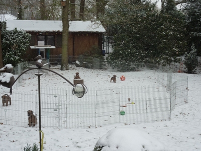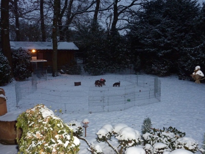 Den Schnee finden wir einfach super. Wenn es uns zu kalt wird, gehen wir einfach schnell in unser warmes Häuschen und wärmen uns wieder auf. Dann geht's gleich wieder los.