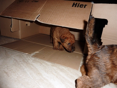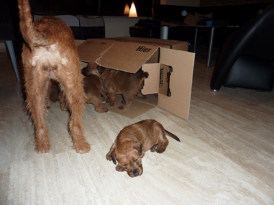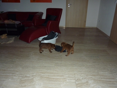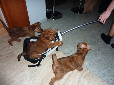 Morgen, am 13.12.2010, steht der Tierarztbesuch für's Impfen und Chippen an. In den Tagen danach wird die Welt unserer kleinen Mäuse wieder mal ein gutes Stück größer: Andere Hunde und Tiere, Straßenverkehr und Spaziergänge in neuer Umgebung etc. etc.