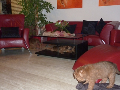 Ansonsten machen wir es uns bei Frauchen im Haus bequem... Leider hat sie doch tatsächlich den Ficus-Baum abgesperrt - jetzt können wir keine Blätter mehr zupfen und Blumenerde ausgraben. Spielverderberin!
